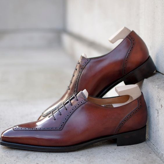 Handmade Brown Oxfords Formal Design Lace Up Shoes For Men