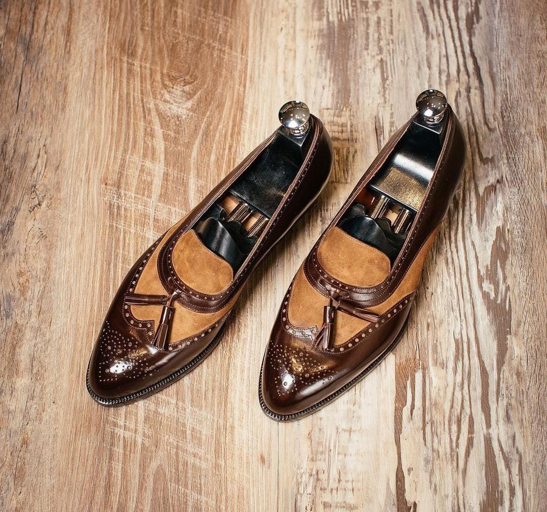 New Edition Handmade Brown Contrast Wingtip Moccasin Dress Shoes