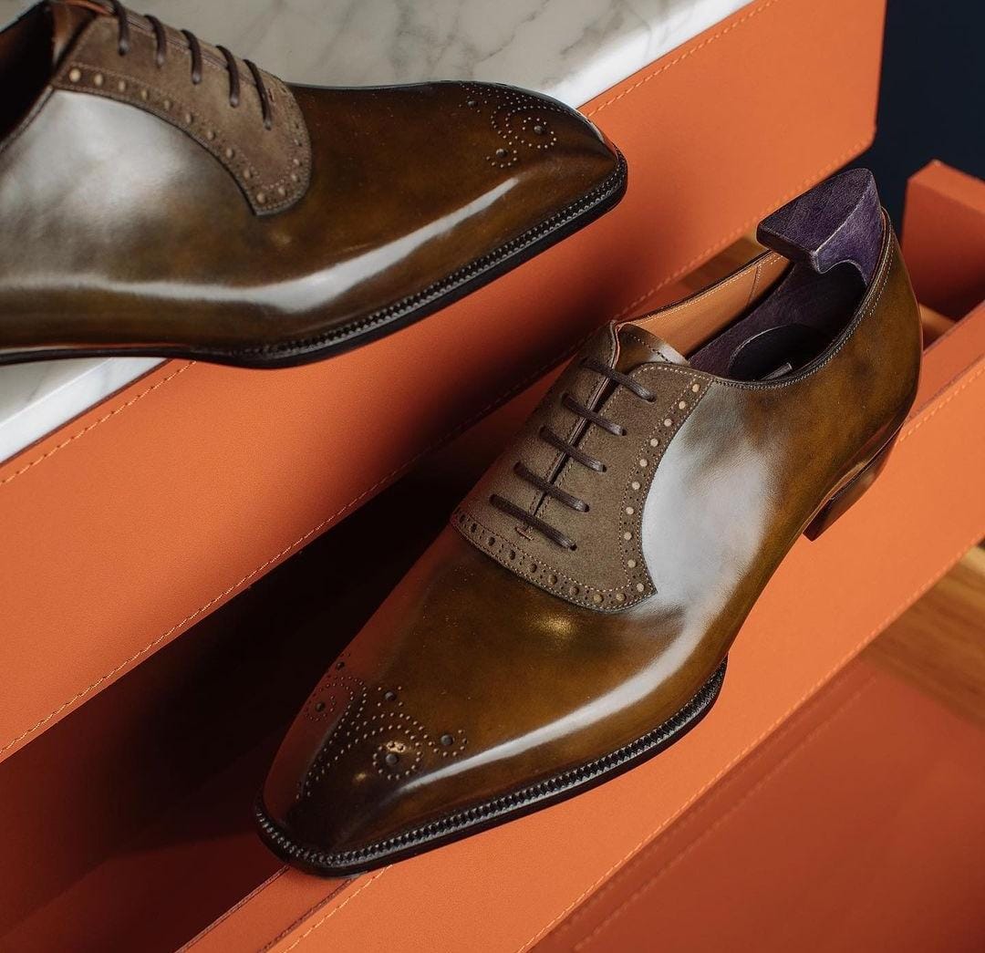 Handmade Brown Brogue Designer Style Bespoke Lace Up Shoes