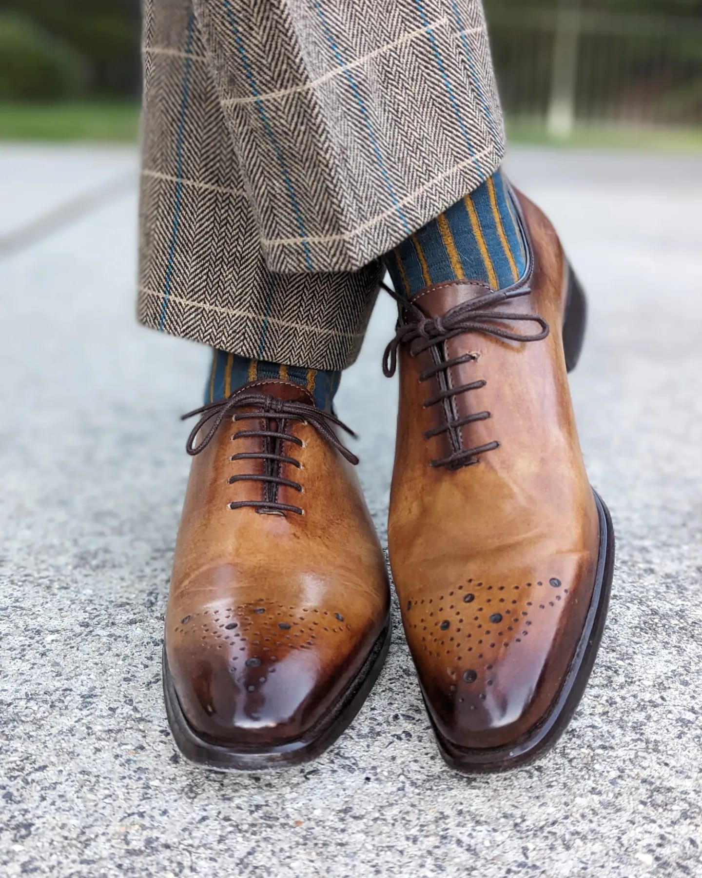 The Handmade Two-Tone Brogue Lace-Up Shoes offer the perfect blend of timeless elegance and modern design. Their premium construction and meticulous detailing make them a standout addition to any wardrobe.