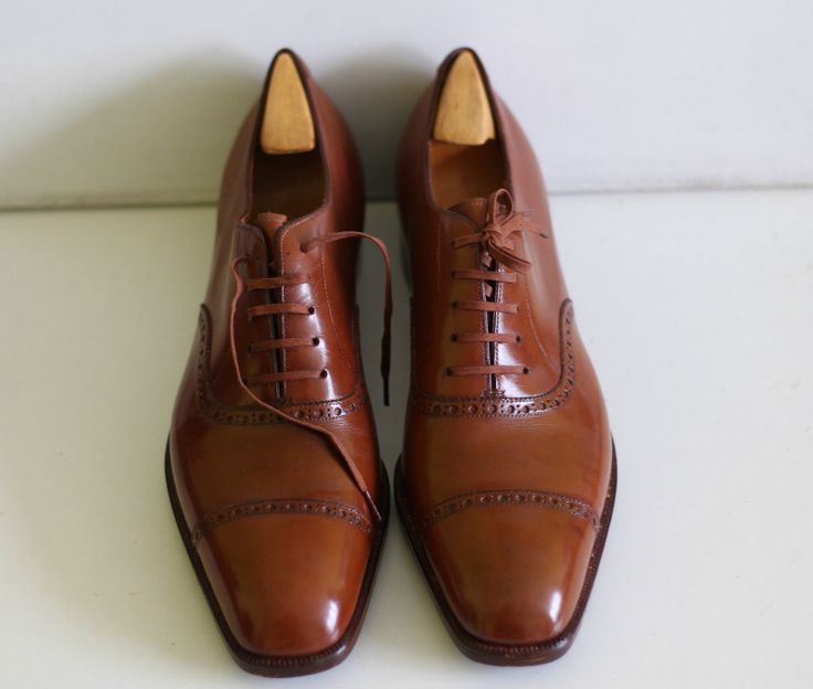 Handmade Men's Semi Oxfords Cap Toe Lace Up Dress Shoes