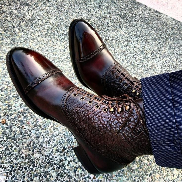 Handmade Men's Brown High Ankle Boot With Alligator Texture Skin