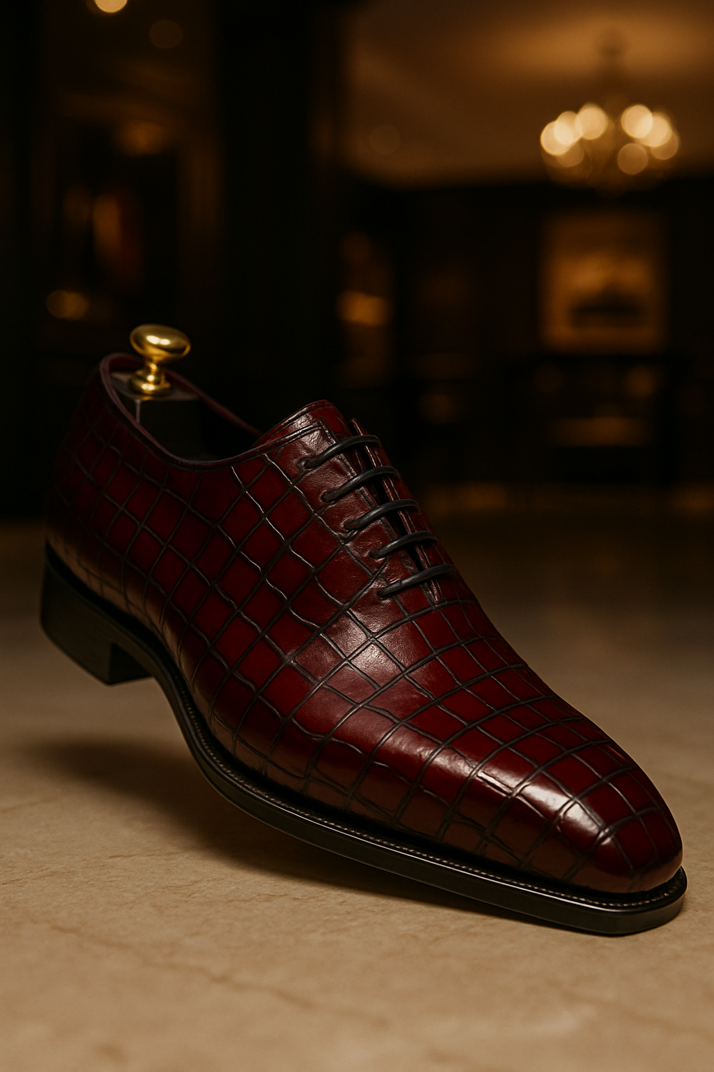 Top Trending Mens Handmade Burgundy Alligator Skin Lace Up Wedding Shoes
